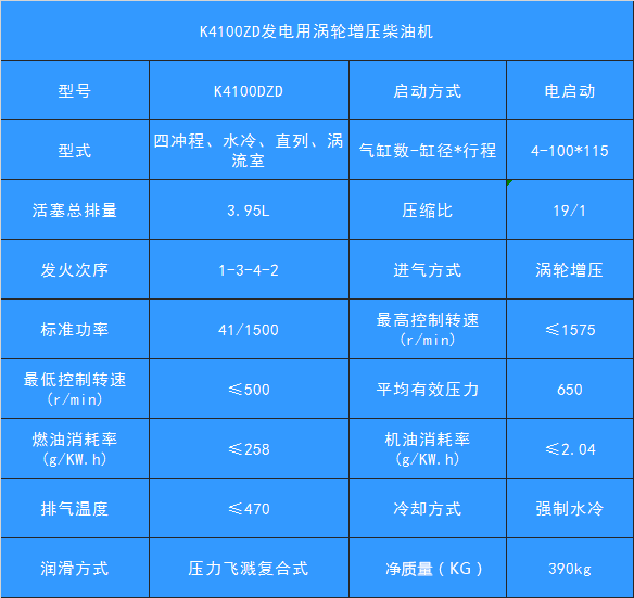 K4100ZD發(fā)電用渦輪增壓柴油機